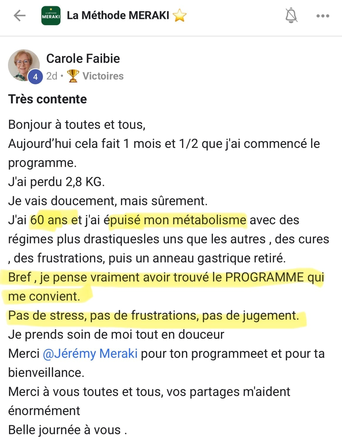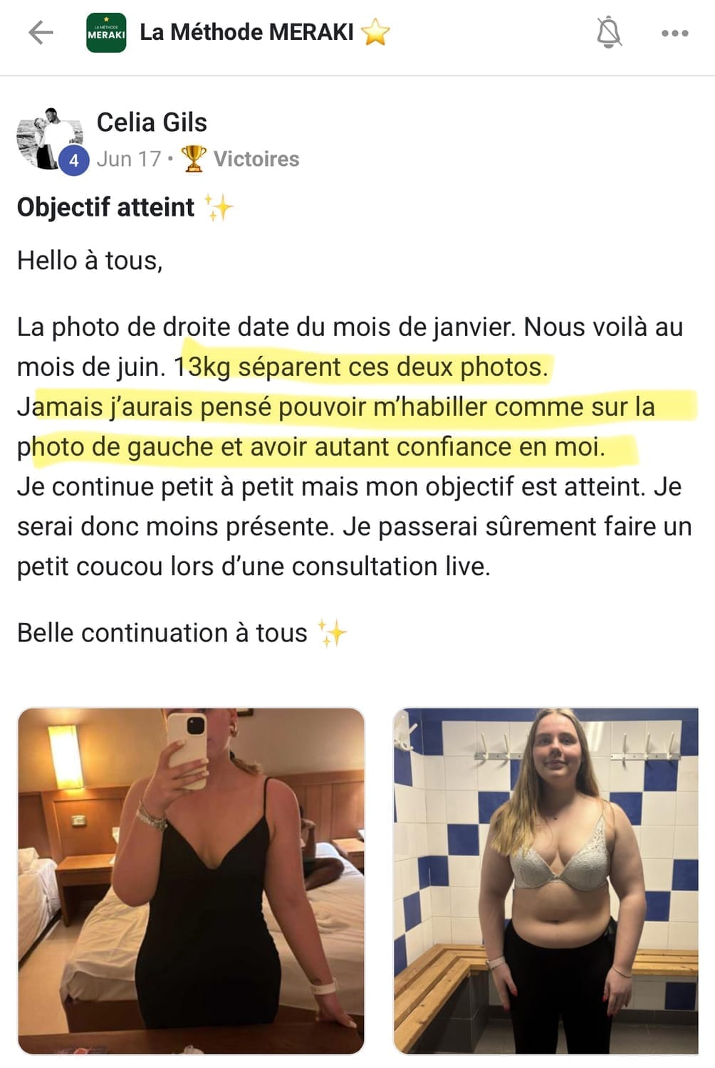 Bien sûr ! Même si la méthode MERAKI a été pensée en priorité pour les femmes de plus de 30 ans, de nombreuses femmes plus jeunes suivent aussi l’accompagnement avec succès. Que vous ayez 20 ou 45 ans, les principes restent les mêmes : retrouver un équilibre alimentaire, vous réconcilier avec votre corps et perdre du poids sans tomber dans les régimes extrêmes. Si vous en avez assez de reprendre du poids à chaque tentative, le système MERAKI peut justement vous éviter des années à complexer !